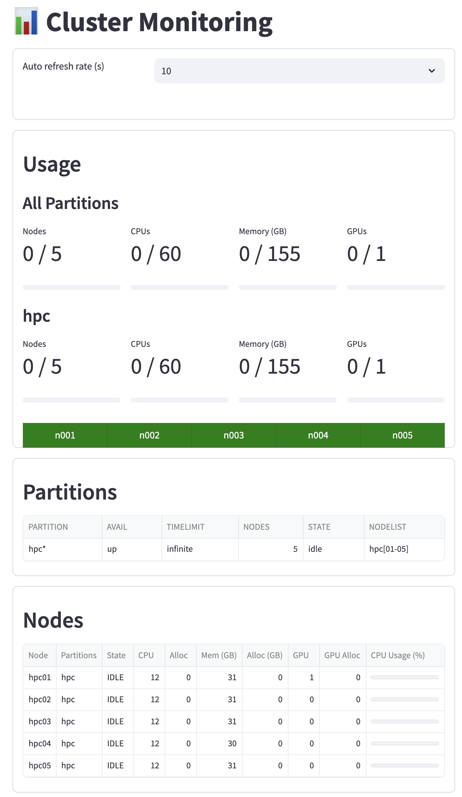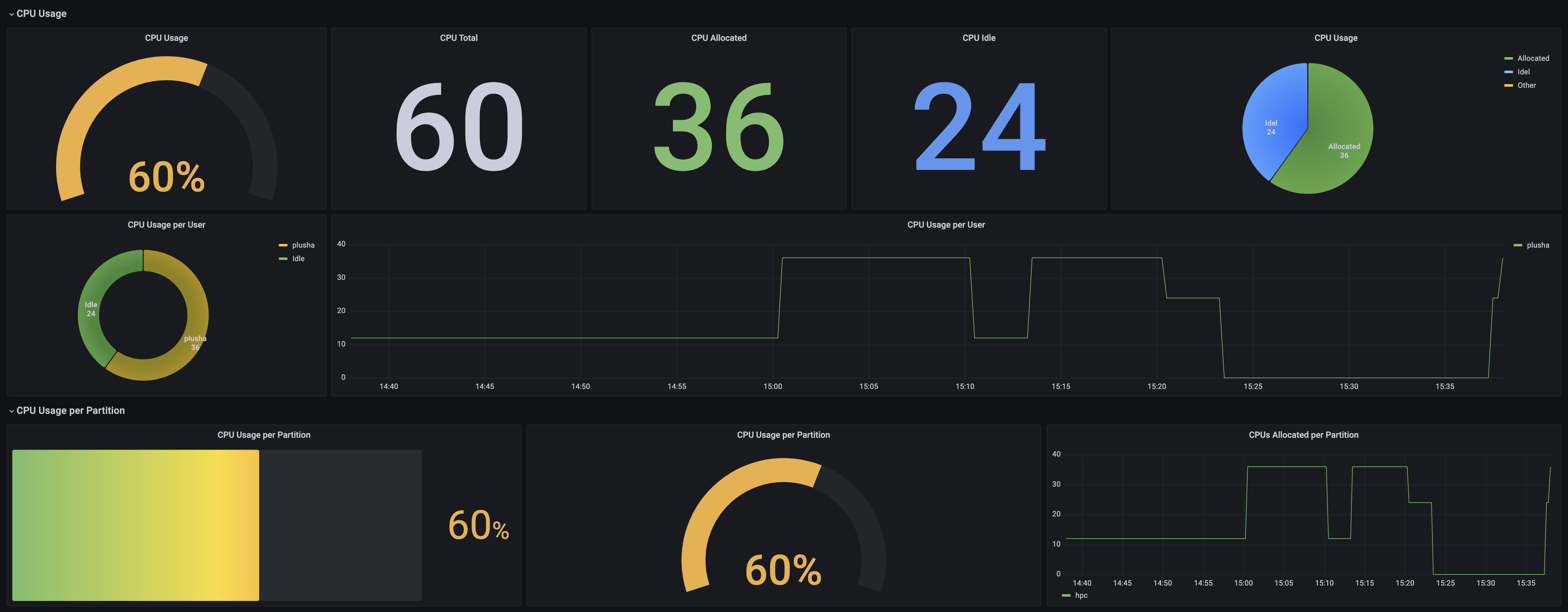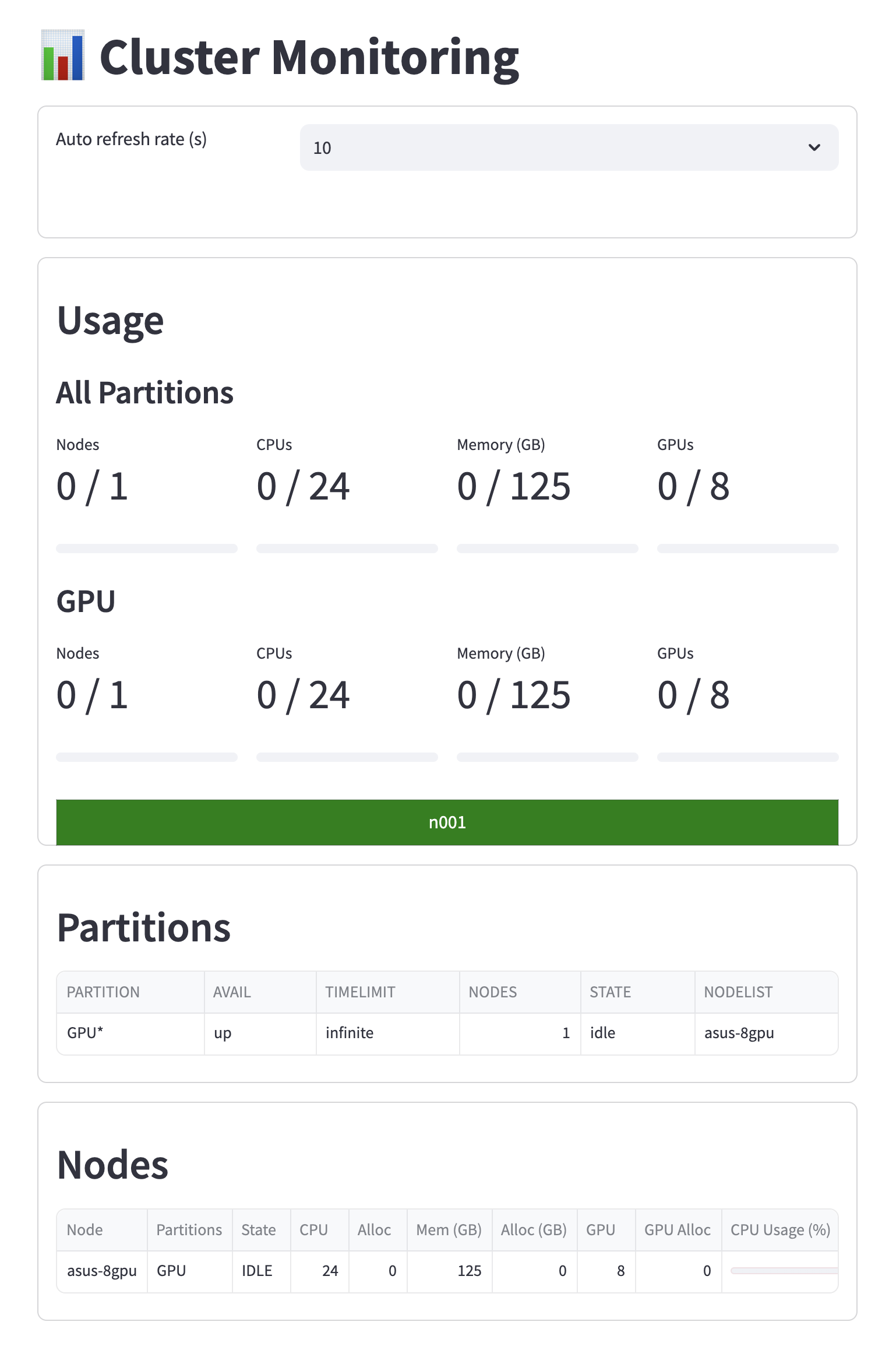 노드/파티션 CPU 및 GPU 사용량 표시