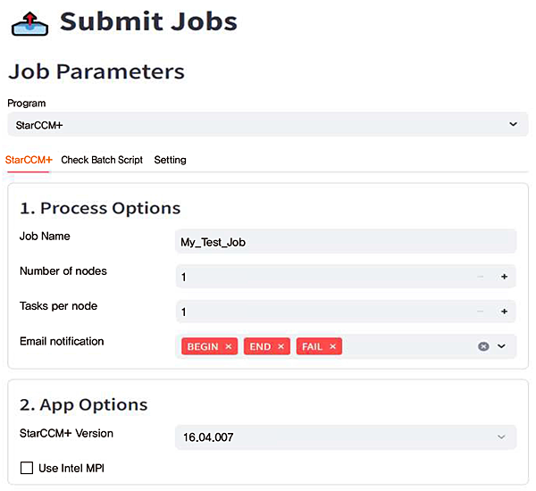 StarCCM+, OpenFOAM, 기타 작업 제출 가능